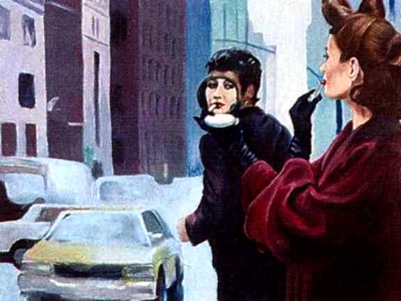 "A probléma intellektuálisabb és kevésbé direkt megközelítését kísérelte meg Várnagy Tibor mindkét Salvo Titulóján (...). Diptichonján a női kézben tartott Borges-írás egyrészt azt is sugallhatja, hogy a gyengébb nem is igenelheti a szellemi termékeket, másrészt azt is, hiába van a könyv egy nőnél, azt nem maga, hanem a néző felé fordítja, ráadásul a lekopott vöröses körömlakktól közönséges kézben szinte szentségtörés egy ilyen tárgy.
