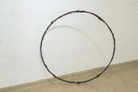 Másfelől a gyökeres redukció szinte kiveti a képfelületről az absztrakt formát. Ha