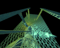 Miután elkészítettem a díszlet legfontosabb elemeit megpróbáltam megtalálni a szereplők pontos helyét, a fényforrásokat és azt a nézőpontot ami a képen is látható. Én a három fényforrásból elhagytam a természetes fényt, és megnéztem a két misztikus fényt miként világítja meg a jelenetet (a virtuális térben csak akkor létezik valami, ha van fény, ha van világítás).