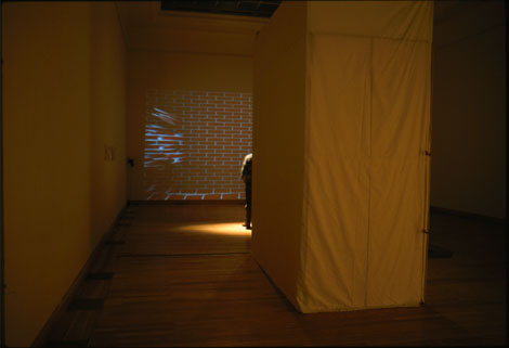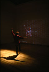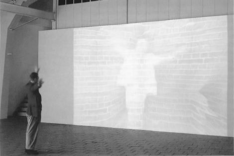 "No one here gets out alive" - Jim MorrisonPresumably cave drawings could have been the basis of Plato's cave metaphoric. I have stored the image of a brick wall in the computer, which will be projected on the wall of the museum with the help of a data processor. If an observer stands in front of the wall, the videocamera records him. The computer transforms analogue signals recorded by the videocamera into lines of drawings, which influence the digital sign sequence of the brick wall, which has been stored in the computer. The modification of signs, which becomes sketchy and drag on due to the complexity of data processing, will be projected onto the wall. The spectator stands in front of the wall in reality, but virtually behind the wall. He stands simultaneously in front of and behind the wall, the stage, and the curtain. He is woven into the curtain and he draws himself into the cave drawings. So the observer is part of the world he sees, therefore part of the point of intersection, the inner side of the world. He is a captive of the world, though he is condemned to be only able to observe the world from within, therefore virtually he becomes the outside observer as well. With the help of new technology and new world concepts, he can transform himself into an outside observer of the world who is pushed to the wall of the cave from the outside. The citizen of the world becomes the fictive outside observer of the world in which he lives. This inner situation presses the spectator, the captive of the world, beyond the boundaries, the point of intersection and the wall to the prison bars of the space-time, the curtain of the stage and the wall of the cave. |