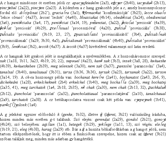 vizsgálva a kódex Kniezsa rendszerébe nem illeszthető bele, hiszen a c-t csak