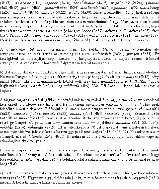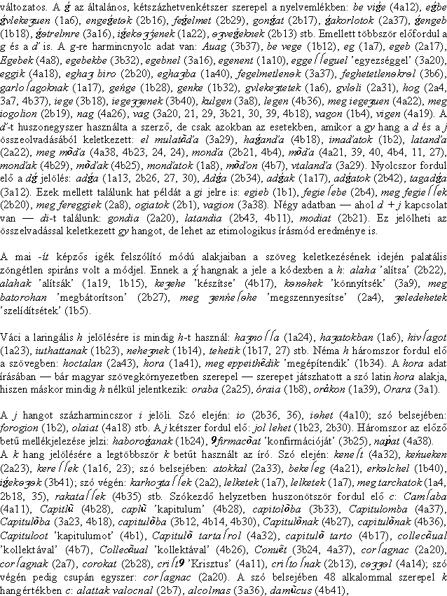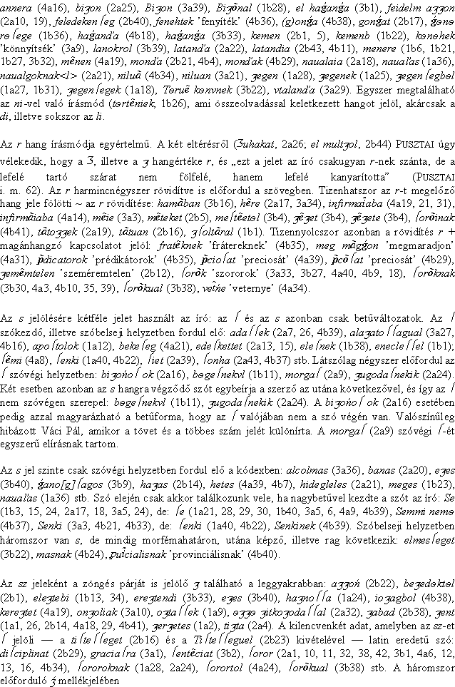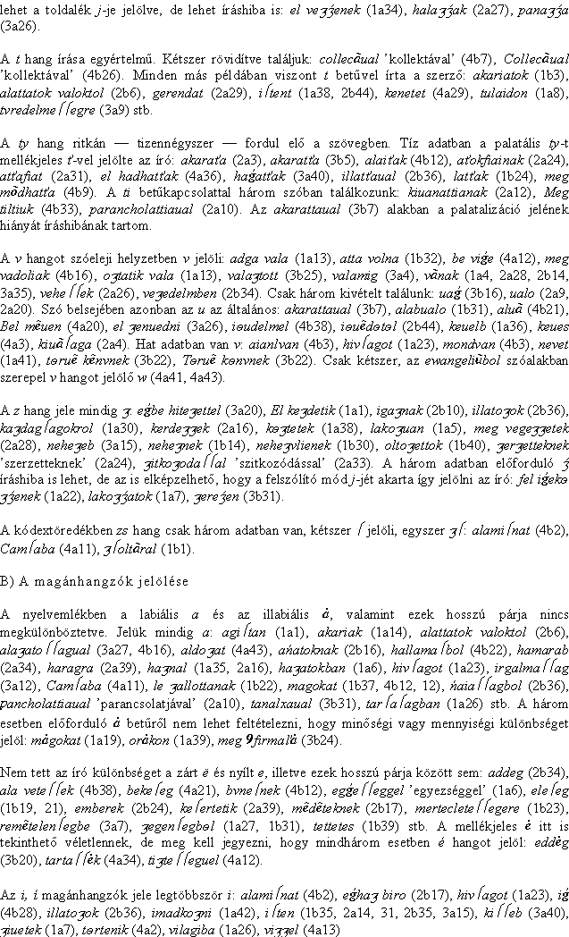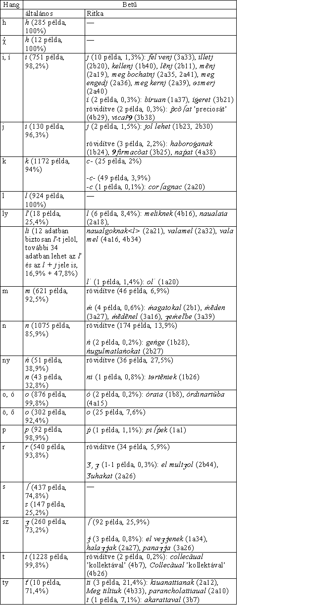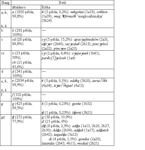 3. A következőkben a nyelvemlék hangjelölését, betűrendszerét a teljes anyagra kiterjedő mikroszkopikus vizsgálat alapján mutatom be: