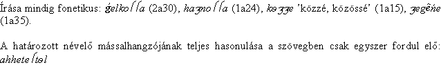 szóelemző írásmód, és csak kilenc (14,8%) fonetikusan írt adat van. A nyelvemlék