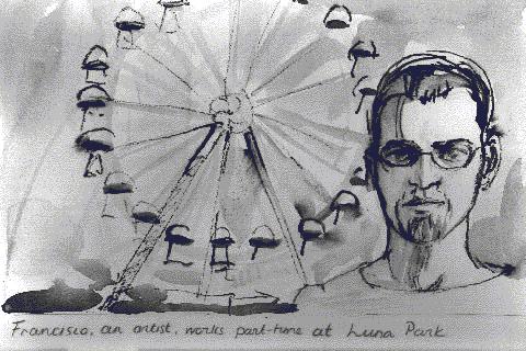 Francisco munkanélküli mûvész, félállásban egy vidámparkban dolgozik.