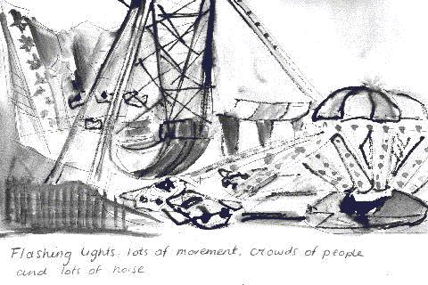 Flashing lights, lots of movement, crowds of people and lots of noise.