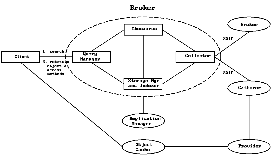 As illustrated in Figure 1, Harvest consists of several subsystems. The Gatherer subsystem collects indexing information (such as keywords, author names, and titles) from the resources available at Provider sites (such as FTP and HTTP servers). The Broker subsystem retrieves indexing information from one or more Gatherers, suppresses duplicate information, incrementally indexes the collected information, and provides a WWW query interface to it. The Replicator subsystem efficiently replicates Brokers around the Internet. Users can efficiently retrieve located information through the Cache subsystem. The Harvest Server Registry (HSR) is a distinguished Broker that holds information about each Harvest Gatherer, Broker, Cache, and Replicator in the Internet.