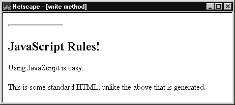 Notice that there is no difference in appearance between the first line, generated with JavaScript, and the second line, generated with plain HTML.