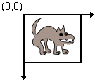 When the default transformation from user space to device space is used, the origin of user space is the upper-left corner of the component's drawing area. The x coordinate increases to the right, and the y coordinate increases downward, as shown in the following figure.