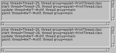 Below are two PrintThread applets. (Here's the code.) PrintThread callsrepaint()unnecessarily every once in a while, so that you'll be able to see how itsupdate()method gets called.