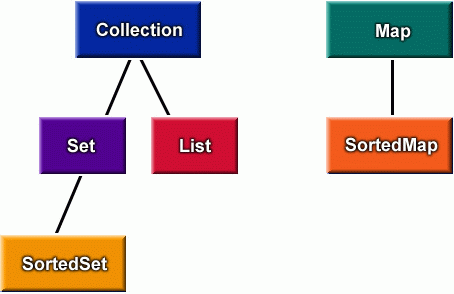 The core collection interfaces are the interfaces used to manipulate collections, and to pass them from one method to another. The basic purpose of these interfaces is to allow collections to be manipulated independently of the details of their representation. The core collection interfaces are the heart and soul of the collections framework. When you understand how to use these interfaces, you know most of what there is to know about the framework. The core collections interfaces are shown below:The core collection interfaces form a hierarchy: a Setis a special kind ofCollection, and aSortedSetis a special kind ofSet, and so forth. Note also that the hierarchy consists of two distinct trees: aMapis not a trueCollection.To keep the number of core collection interfaces manageable, the JDK doesn't provide separate interfaces for each variant of each collection type. (Among the possible variants are immutable, fixed-size, and append-only.) Instead, the modification operations in each interface are designated optional: a given implementation may not support some of these operations. If an unsupported operation is invoked, a collection throws an