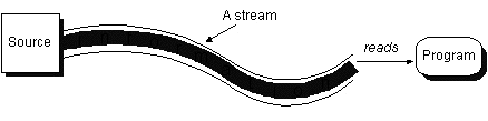 Often programs need to bring in information from an external source or send out information to an external destination. The information can be anywhere: in a file, on disk, somewhere on the network, in memory, or in another program. Also, it can be of any type: objects, characters, images, or sounds.To bring in information, a program opens a stream on an information source (a file, memory, a socket) and reads the information serially, like this: