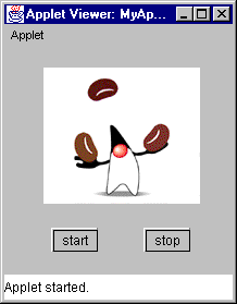 beanbox/tmp/myAppletdirectory. You can inspect your handiwork by bringing up appletviewer in the following way:appletviewer <BDKInstallation>/beanbox/tmp/myApplet.htmlHere is what you will see: