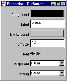 Note that if no property editor is found for a property, the BeanBox will not display that property in the Properties sheet.