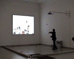 Pál Szacsva y: Ballgame interactive video installation Ballgame puts its receiver into a position that is multiply provocative. The basic condition offered by the installation encourages the physical aggression of the player, which is “slammed” in a virtual space. The visitor can throw the balls found in the exhibition space at the projected moving image, the result of which is that the human figures appearing, in the case that they are hit, repeatedly drop to the bottom of the image and quite loudly declare their opinion about the incident. The game emotionally compels the receiver to continue – and to ever more skilfully slaughter the moving human figures – while the successful hit is always “rewarded” by an unexpected and unforeseeable response. The special distinction of Ballgame is that the figures of the victims appearing in it were produced with the employment of likenesses of recognisable artists. The characters express the opinions of the artists they embody on their “episode”. Ballgame is an open work. Its interactive nature allows for the relative rearrangement of the depicted contents within/through it by the receiver. At the same time, I already invited co-authors to take part in the preparation of the work (11 international and 11 Hungarian artists agreed to play a “role” in Ballgame). Consequently, an important element of the work is that, although the concept, framework and basic structure design are my own composition, the accomplishment of its message was achieved through collective creative efforts. Ballgame is a part of the “Artiste Trouvé” project, one of whose primary aims is the encouragement of collective creative processes initiated by artists. |