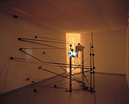 There are no buttons for the user to push. You have to immerse yourself in it, displace your point of view, and interconnect the perspectives. It is a landscape that you have to cross. You have to be corporeally inside a jungle of light, metal, celluloid and current: a story that is told by building blocks, projected illusions and choreographies of hanged film. Rosa Barba wants to save the metaphysical power of the cinema over the digital hysteria. The counter-motion sequencer is a paradox manifest; it is a devising machine, a criticizing machine and a techno-space divider; the sense of the digital that a body receives."