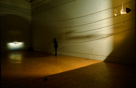 Péter Kiss 1994 Frequency Copper, loudspeaker, microphone, rubber tube, 12 x 2 x 4 m (Photo: Péter Kiss)