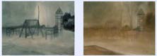 Tanulmány sötétedéshez, 1995, olaj, vászon; 30x50 cm/db (2 db).