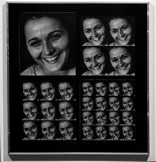 Türk Péter Statikus mozi. A vizuális információ változásai egy portré részecskéinek szisztematikus szétosztásával 1-4, 1978