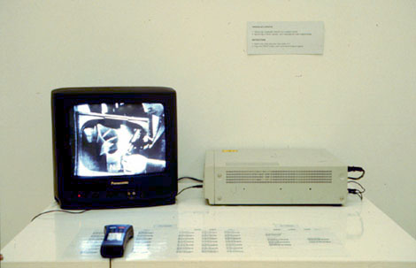 Öröm felemelni egy darab ócskavasat, leporolni, visszaadni a nevét, helyrehozni, dollárezrekért biztosítani és publikálni egy osztrák mûvészeti katalógusban! MYOPSIS: A videó rátelepedett a magánéletünkre, bezsúfolódott 14. utcai padlásunkra. A megoldás a Kitchen megalapítása volt, 1971-ben. Egyszeriben egy Európától Japánig és Kanadáig húzódó hatalmas hálózat részei lettünk. Természetesen a hálózat globális jellege nem, csak egy áramköröket építõ kis közösség használt szakértelmünknek az elektronikus képkészítés terén. Ezt a társaságot mutatja be a kiállítás. Volt egy legitim földalatti technológiai közösség, amely elég szabadon élt ahhoz, hogy alacsony költségvetésû kísérletezésbe és gyártásba fogjon. Ezenkívül, egyidõben a hallucinogén anyagok használata révén általánosan ismert, domináns archetipikus kép jelenlétével, egy sor új magasfeszültségû alkatrész jelent meg a piacon. Végül, volt egy mûvészgeneráció, amely égett a vágytól, hogy kipróbálhassa az új boszorkányságot. És közönséget is találtak... Fontos megjegyezni, hogy a videós kísérleteken kívül létezett egy széles körben elterjedt, ún. mixed media, különbözõ médiumokat (például a televíziót mint zártláncú berendezést) használó gyakorlat is. És természetesen az elektronikus hangkísérletek is ekkor élték aranykorukat. De a legfontosabb annak a megértése, hogy a médiatevékenység mindezen formái egy nagyon is virágzó kulturális háttér - festészet, szobrászat, költészet, zene és film, hogy csak egy párat említsek - ellen irányultak. Az általunk, belülrõl kínált perspektíva lehet hogy nagy mértékben túlzó: mindenestre Ön, a nézõ, ezt kapja. A videómozgalmon belül a kiállításra kiválasztott darabok furcsának tünhetnek. Az audióról/videóról nem kívánunk más értelmezést adni, csupán elektronikus jelként mutatjuk be - vagyis abban az áldott állapotában, amikor alkalmassá válik elektronikus eszközökkel való átalakításra. Kerüljük az alapvetõ és fontos festõi és konceptuális hatásokat, amelyek a korszak "mûvészet mint stílus" felfogásából, társadalmi hatásokból, valamint a galériák és a mûvészeti piac hatásaiból erednek. Hisszük továbbá, hogy a videómûvészet legfontosabb alkotásait más kurátorok már szisztematikusan bemutatták. Másrészt, amit az „óvilágból" érkezõkként még lényegesebbnek, még rejtélyesebbnek és megmagyarázhatatlanabbnak találtunk, az az amerikai innováció és invenció meghatározatlan szelleme volt. Számunkra ez volt minden teendõ. A hatvanas években megkülönböztettük az értelmiségi és a munkás származású mûvészeket. Mi mindketten szocialista társadalmakból jöttünk, és a munkások oldalán álltunk. Azt gondoltuk, hogy a világ még mindig materiális, még ha mi metafizikus anyagokkal foglalkoztunk is: az Idõvel és az Energiával. A TECHNOLÓGIA: Az eszközökön kívül a kiállítás lényegét a képek, az álló- és mozgóképek alkotják. Saját munkánk során eljutottunk arra a technológiai szintre, hogy alkotásainkat lézerlemezen mutathatjuk be. Attól a pillanattól kezdve, hogy a sávkódban felfedeztük a lézerlemez és a nyomtatott lap közötti kapcsolatot, tudtuk, hogy csodálatosan illeszkedne a kiállítás céljához. A sávkód olvasására szolgáló esetlen lézertõll és az idõzítés ellenére meggyõzõdésünk, hogy ez a módszer és a téma tökéletes egyesítése. A SZALAGOK: Steina világéletében szenvedélyesen gyûjtötte a videószalagokat. Nagyon korán kezdett saját szalagokat cserélgetni, s ezt a szokását máig megtartotta. Kezdetben a belsõ kényszer, hogy egyedülálló felfedezésüket valakivel megosszák, arra vitte az embereket, hogy szinte kötelezõen videólevelekkel kommunikáljanak; a „hogyan csináljuk" és a „nézd meg, mit csinálok" jellegû videófelvételek már-már önálló mûfajjá nemesültek. Gyakran mi voltunk e levelek elsõ címzettjei, s ma csodálattal tekintünk szalagjaink lenyûgözõ választékára, amely a kiállítás magját alkotja. Az elektronikus hang- és képkészítés között soha nem volt ilyen erõs a kapcsolat. Úgy tûnik, mindegyik mûvészgeneráció abba a csábító vállalkozásba kezd, hogy a hangot és képet egyesítse, remélve, hogy egyszer s mindenkorra megoldhatja az audio-vizuális esztétika rejtélyét. Az a generáció, amelyet bemutat a kiállítás, valami közelebbit birtokol: ha a hang és a kép összeszerkesztésének misztériumát nem is sikerült felfednie, ez egyszer az anyag, vagyis a frekvencia, a feszültség és az anyagot szervezõ eszközök egyenértékuek voltak. Az oszcillátor megjelenése és használata vált a természetes kapoccsá. Sok munkatársunk, mint ahogyan mi is, audiószintetizátorok audióoszcillátorát használta elsõ videóképei generálásához. Az elsõ videós eszközöket az audióeszközök felépítése ihlette, és az elsõ képszerkesztések is hasonlóképpen születtek meg. A visszacsatolással (feedback), ami az összes ilyen eszköznek természetes része, elkezdõdött a létrehozott képek szakterminológiájának kialakulása. A kiállítás alapkoncepciójául, Peter Weibellel egyetértésben, a hang- és a képkészítés eszközei között fennálló folytonosságot választottuk. Azt is tudtuk, hogy minden esély megvan arra, hogy a hang és a zene mûvelodéstörténetének hatalmas súlya kibillenti a kiállítás egyensúlyát a középpontból. Úgy legyen! Woody Vasulka SAJNÁLKOZÁS: Nos, itt az idõ... Még mindig sajnálom, hogy nem tudtuk mûködésre bírni Tambellini Fekete spirálját, és hogy Beck DVS-ének helyreállítása és bemutatása kivitelezhetetlen szervezési feladatok elé állítana minket. Azt hiszem, Siegel EVA-ja még él és valószín