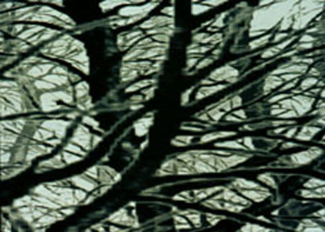 In the first version of The Forest, made as a computer animation, the image of the forest creates the impression of a three-dimensional space constructed from elements which themselves are only two-dimensional. The basis for the image is a black-and-white drawing of a bare tree. (…) this tree is directly related to the calligraphic drawing of human figuers seen in Balance. The Forest can also be viewed as a long vertical composition running in an infinite sequence. The effect of infinity is partly created by the suggestion of perpetual motion: to the viewer, the camera seems to move continually up and down, although it never actually pans as far as the treetops or the ground. This is the first of severel lines of movement in the animation.