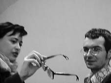 "Jó a szemüveged" - mondta Beöthy Podnarnak, amikor másodszor találkoztak. Fontos megállapítás egy induló kapcsolatban, mert ugye egy rossz szemüveg zavarja a látást, vagy esetleg végzetesen belerondít viselõje fizimiskájába. Jó a szemüveged - mondta, és ezzel elindított egy visszafordíthatatlan gondolatsort, a nyilvánosság szférájába transzformált magánélet ötletét, amely az itt látható kiállítás vezéreszméjévé vált. Podnar ezután összeismertette Beöthyt a fiatal szlovén mûvésznõvel, Maja Licul lal, s a többit már rájuk bízta. Maja Licul aztán teljes nyíltsággal tárta elénk E-mail-es levelezését Beöthyvel. Egy asztal üveglapja alatt kiprintelt lapokon olvashatjuk kettejük alkotói párbeszédét. Az asztalra különbözõ gyógyszereket is kipakolt, amibõl bárki szükséglete szerint fogyaszthatott (gondolom, ha valakit netán rosszullét kerülgetne ennyi õszinteség láttán).
