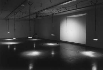 Az eredmény egyrészt kalligrafikus fényhatás, másrészt zaj. Baginsky nemcsak a külsõ ingerre számít: a padlón fényérzékeny egységekkel összekötött hangszórókat is elhelyez, amelyek a lámpák fényére reagálva hangot adtak ki. Ezeket a hangokat a számítógép felfogja, s erõsségüknek, illetve frekvenciájuknak megfelelõen mûködteti a „szúnyogokat". Így a rendszer önszabályozó is: hangra reagáló fényeffektek gerjesztenek hanghatást és dinamikus mozgást. A tér így szüntelenül eseménygazdag, a látogató pedig kedvére keresgélhet a robotnak tetszõ hangmagasságok és frekvenciák között.