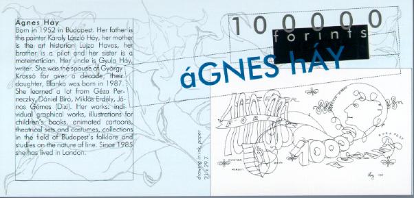 Born in 1952 in Budapest. Her father is the painter Károly László Háy, her mother is the art historian Lujza Havas, her brother is a pilot and her sister is a matematician. Her uncle is Gyula Háy, writer. She was the spouse of György Krassó for over a decade; their daughter, Blanka was born in 1987. She learned a lot from Géza Perneczky, Dániel Biró, Miklós Erdély, János Gémes (Dixi). Her works: individual graphical works, illustrations for children’s books, animated cartoons, theatrical sets and costumes, collections in the field of Budapest’s folklore and studies on the nature of line. Since 1985 she has lived in London. |