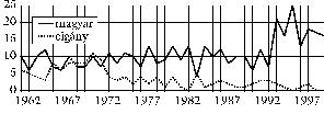 a különbözõ etnikumoknál (1962–2000)