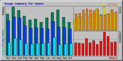 | Hits | Files | Pages | Visits | Sites | KBytes | Visits | Pages | Files | Hits | |