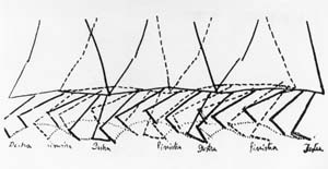 Etienne-Jules Marey kronofotográfiai felvétel után készült diagrammja