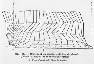 chronophotograph of the locomotion of the horse's forelegs. Armand