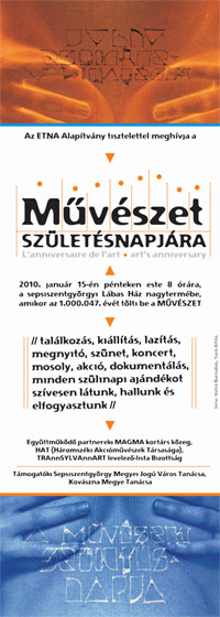 Az ETNA Kortárs Művészeti Alapítvány tisztelettel meghívja a Művészet születésnapjára