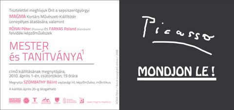 Rónai Péter és Farkas Roland kiállítása. Magma Kortárs Művészeti Kiállítótér, Sepsiszentgyörgy, 2010. április 1–20.