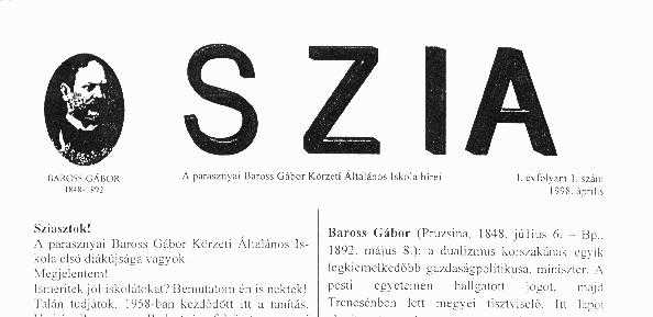 "SZIAsztok!" Iskolaújságunk címével köszöntök mindenkit. Parasznyán a körzeti iskolát a haladás és a kényszer hívta életre 1958-ban. Ekkor már természetes volt a nyolc osztályos általános iskola. A Pitypalatty-völgy községei azonban olyan kis lélekszámúak voltak / 450-1100 fõ/, hogy lehetetlen volt minden községben megoldani a szakszerû oktatást. Így épült meg Parasznyán Varbó, Parasznya és Radostyán 5-8. osztály tanulói számára a modern, oktatási eszközökkel jól felszerelt, tornateremmel ellátott Körzeti Általános Iskola. A völgy többi községe, Kondó, Sajólászlófalva és Sajókápolna 1963-ban csatlakozott a parasznyai iskolához. Az új iskola igazgatója Molnár István volt, aki mély szakmai ismerettel, rendszeretetével, példamutatásával, következetességével vezette az iskolát. Nemsokára jó hírnevet szerzett az intézmény a környéken. Tehetséges gyerekek nyerték a körzeti, megyei versenyeket. Az évek során volt tanítványainkból lett orvos, jogász, közgazdász, mérnök, tanár. A völgy jelenlegi nevelõi közül többen itt jártak általános iskolába. Az úttörõélet Kocsis Teréz csapatvezetõ irányítása alatt virágzott fel. E völgy kicsinyei és nagyjai mindig szerették az úttörõéletet. A parasznyai úttörõcsapat mindig tenni akart, mindig jellemzõ volt az új, az izgalmas keresése. 1965-ben már élt az úttörõtanács és aktívan végezte munkáját. Úttörõink, kisdobosaink sokat kirándultak, táboroztak, vetélkedtek, de nagyon kedvelt volt a sport. Fõleg a foci! Van ismert focistánk is: Gulyás, a Vasas kapusa. Nagy volt az érdeklõdés a Lakatos Izabella vezette gyakorlati foglalkozások iránt. Sokan tõle tanulták meg a házvezetés kezdõ lépéseit / fõztünk, sütöttünk, varrtunk, kötöttünk, horgoltunk, stb. / Büszkék lehettünk a csapat kulturális életére is. Kocsis tanító néni által vezetett irodalmi színpad sok dicsõséget szerzett iskolánknak három évtizeden keresztül. Színjátszóink kiemelkedõ eredményeket értek el megyeszerte. Molnár István nyugdíjba vonulásakor Paszternák István vette át az igazgatást 1978-ban. Az õ vezetése alatt épült fel az új szárny, megalakult a napközi otthon. Az iskola mai formáját 1990-ben érte el. A megyében elsõk között kért és kapott az iskola önálló gazdálkodási jogot. A rendszerváltást követõen megszûnt az iskolában az úttörõcsapat mûködése. Ûr maradt mögötte, mert abban az idõben senki sem vállalta fel ezt a munkát. Az iskolai diákönkormányzat és a diáksportkör csak késõbb alakult meg. Töretlen sikerek születnek Szelekovszky Lóránt igazgatósága alatt is, aki 1993-tól irányítja az iskola életét. 1994-ben vette fel az intézmény a Baross Gábor nevet. Névadónkra emlékezve minden évben megrendezésre kerülnek a Baross-napok gazdag programokkal. Eredményesen szerepelnek tanulóink a kulturális és sport rendezvényeken. Nagy az érdeklõdés a kismesterségek iránt. Egyre több tanuló vesz aktívan részt ezekben a munkákban. Korongoznak, szõnek, kosarat fonnak, ismerkednek a számítógéppel. Terveink között szerepel az iskola 10 osztályossá tétele. Iskolánk bölcsõjénél lelkes pedagógusok és gyermekek szorgoskodtak. Így van ez ma is. De mellettük ott vannak a szülõk és más segítõ felnõttek, akik lelkiismeretes munkájukkal megõrzik és öregbítik iskolánk jó hírnevét. |