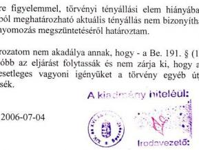 2006. július 4.-én megszületett az ügyészségi határozat, amelynek utolsó három bekezdését idézem. Arra persze gondolni sem merek, hogy azért talált ártatlannak az ügyészség, mert időközben lezajlottak az országgyűlési választások, és nem a FIDESZ győzött.