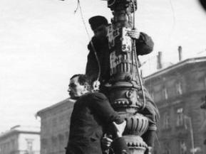Major Ákos: Tudomásul vették. Fölvette velem a kapcsolatot egy Minkin nevű őrnagy. Ő volt ekkor az összekötő. Már a nyár folyamán, hivatott engem egy tábornok. Pontosan nem emlékszem a nevére, egy nagyon német modorú szovjet tábornok volt, akiről kiderült, hogy ő a SZEB4 szovjet szekciójában dolgozik s rólam, személyemre vonatkozóan felvilágosítást kért a Budapesti Népügyészség elnökétől. Úgyhogy az oroszok, miután tudták, hogy én megjártam a szovjet hadműveleti területet is, nem voltak nagyon lelkesen elragadtatva tőlem. De hát szükségmegoldás voltam és ezt a politikai gesztust a szovjet helyesnek tartotta, mert nagyon lelkesen tudomásul vette a Kommunista Párt, a Szabadság c. lap még röpiratot is megjelentetett. A szovjeteknek csak az nem tetszett, ami nekem se, hogy a Vas Zoltán5 csinált egy nagy végrehajtást az Oktogonon, egy népünnepélyt, lámpavassal, ami a bírói gusztusommal nem egyezett. Hatalmas tömeg gyűlt össze. Mikor nagy nehezen fölkötötték a lámpavasra ezeket az embereket, leszakadt a cukorspárgából font kötél, és akkor nekiestek, a kezükbe eső mindenféle eszközzel még összevissza verték a hullákat, és erre a németek odalőttek. Erről az volt a véleményem, hogy ebből elég. Bemutatkoztatok, de többé ilyen népünnepélyt rendezni nem lehetett. Az én véleményem tökéletesen egyezett a szovjet véleménnyel.