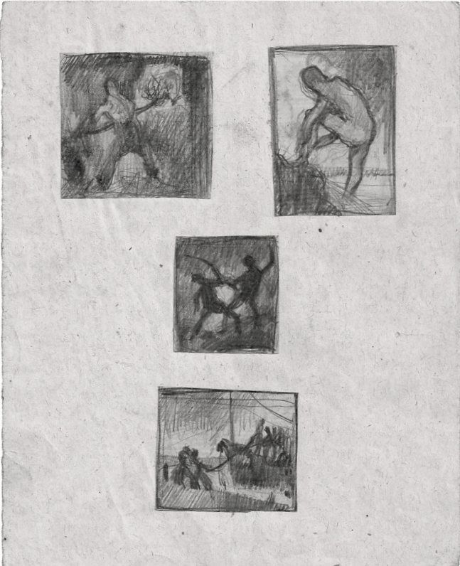 A kiállítás túlnyomó részt Vajda Lajos legkorábbi munkáiból válogat, a tízéves gyerek próbálkozásaitól kezdve a 14-16 éves kamasz rajziskolai tanulmányaiig.