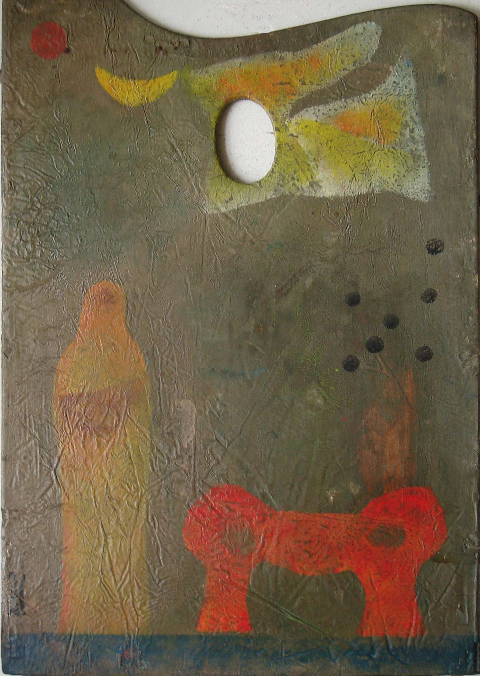 Meg aztán elmondom azt a közhelyet, amit annyi író elmondott már: festő vagyok, és nem túlságosan érdekel a festészet, mint olyan.13 Az avantgardizmust ráhagyatékolom az olyan izgatott palkókra, mint egy Kotányi14, aki nem kisebb divatmajom, mint Korniss. Lehet, hogy van valami mélyen hazug egy olyan vágyban (és főképp egy olyan világban, mint amelyben élünk) amelyben bizonyos harmonikus elrendezettségű rétegekben kerül kifejezésre a dolgokról való elképzelésem. Képeimre gondolok, amelyek mindentől és jóformán mindenkitől való elkülönülésemet jobban kifejezik, mint szavaim és ez az elkülönülésem megtanított a szellemi magányt nem csak elviselni, de valamiképp nyugalmat adó pozitívumnak is felfogni. Különben is mindenki másképp idézi meg az elveszett paradicsomot: Te valamikor egy néger mennyország képében én meg egy nagyon régi Népliget mutatványos bódéit idézem meg és a legszívesebben verklire festeném a képeimet, mint azok a derék pasasok, akik semmiféle művészcsoporthoz nem tartoztak, mert nem voltak művészek. Hát valamiképp én sem vagyok művész a szó mai értelmében, és mint pseudó cégtábla-festő tegnap elküldtem Sárospatakra egy újévi üdvözletet annak a bizonyos Kiss János szijjártónak, aki talán nem is él már, de akinek bádoglovacskája öt magányos esztendőmet betöltötte és képeimet ugyancsak. A lovát metszettem linóba és sárga papírra nyomtam, hogy olyan színű legyen, mint a Kiss kollégáé, aki, ha még életben van, elcsodálkozik, hogy Párizsból kívánnak neki Boldog Újévet. Tudományosan szólván: a hűség dialektikája, avagy a szentimentalizmus logikája.