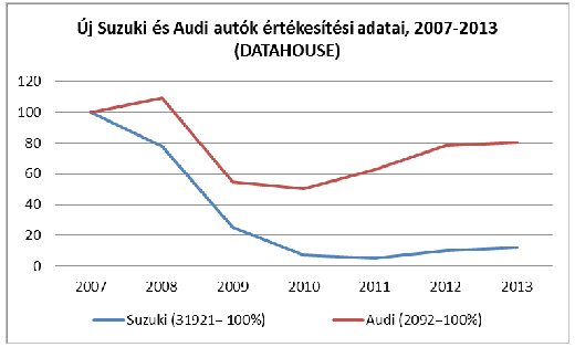 Mivel a lakások megoszlásáról nem tudunk sokat, ezért, az egyenlőtlenségi szempont figyelembevételével a számunkra legbeszédesebbnek bizonyuló adatként – a DATAHOUSE szíves segítségét élvezve – a gépjármű-értékesítés adatai szolgálnak. Az alső és középrétegek által kedvelt hajdanában a „mi autónk” Suzuki 2007-ben még harmincezer új autót adott el, ami 2010-re ezerötszáz alá esett. Ezzel szemben az Audi értékesítései arányaiban lényegesen kevésbé estek, és a mélypont után dinamikusabb a „visszakapaszkodás” is.