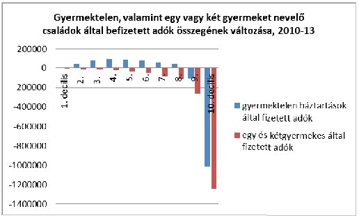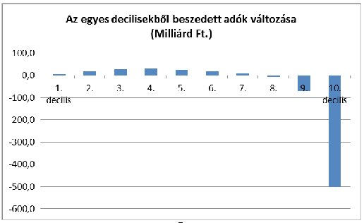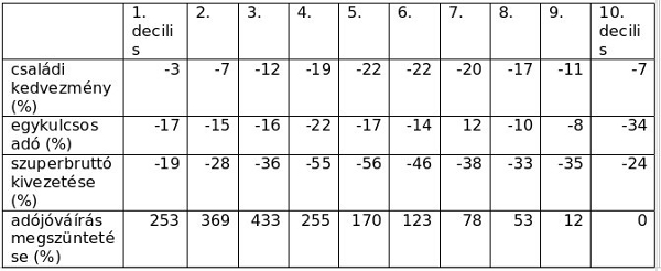 Összességében az egyes jövedelmi decilisek jövedelméből elvont adók (azaz, fordított előjellel a náluk keletkező jövedelmi csökkenés vagy többlet) az alábbiak szerint változott: