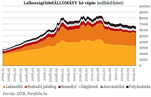 A hazai hitelfelvételek sajátossága az, hogy a kétezres évek közepétől már nem a lakáscélú hitelek bővülése okozza kizárólagosan a lakossági hitelállomány bővülését, hanem annál erőteljesebb növekedést mutatnak a különféle egyéb, fogyasztási és más hitelek is.