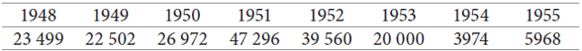 (Statisztikai évkönyv 1949–1955; 357. o.; KSH 1957)