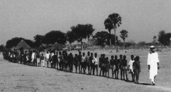 Szudán Exodus a szabadságba 1997 advent elsõ vasárnapja különös várakozással töltötte el Tiomthet dinka falu gyerekeit. Vidáman csilingelõ harang – amerikai misszionáriusok ajándéka – hangja úszott a levegõben. Az éneklõ hívõk elöl egyszerû fakereszttel, kígyózó körmenetben vonultak a szalmatetõs templomba.