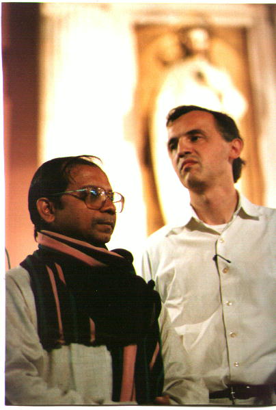 Cedric Prakash SJ beszél, Simonyi Gyula tolmácsol a székesfehérvári Jézus Szíve templomban