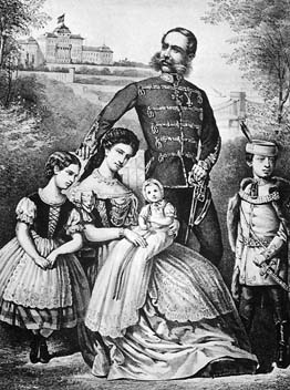 1870-ben egy ismeretlen festô a királyi család minden tagját: Ferenc Józsefet, Erzsébet királynôt és három gyermeküket magyar ruhában örökítette meg. A festményen a háttérben a budai királyi vár és a Lánchíd látható (lásd: képünkön).