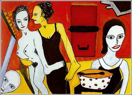 A sík felületek azonban hiába színesek (keveretlen piros, sárga, kék) mozdulatlanul merengenek a nagy dekoratív alakok.