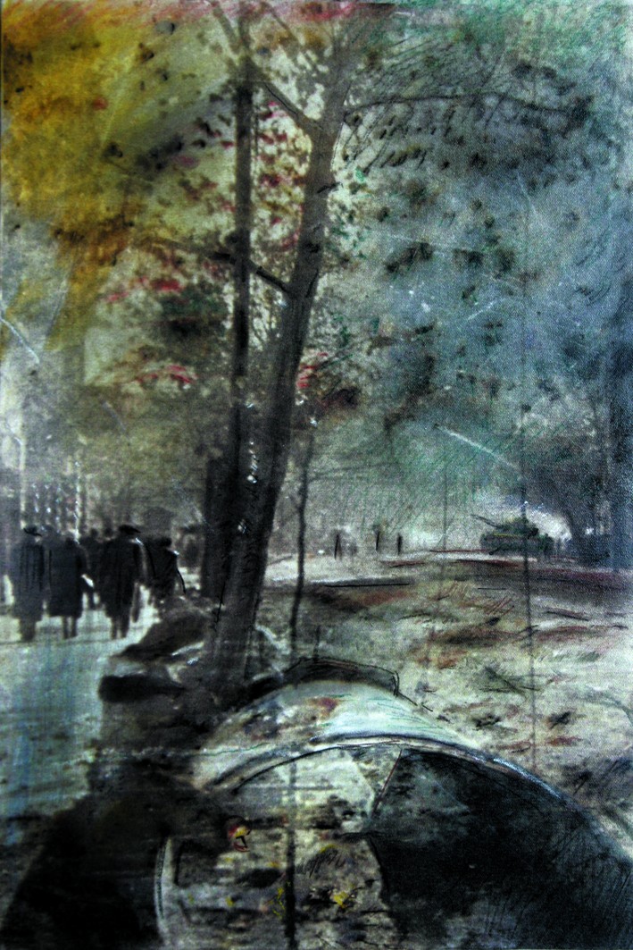 Hazamentem. Szüleim rettenetesen föl voltak háborodva, hiszen alig múltam 15 éves, és innentől kezdve nem engedtek ki a lakásból. Velük kellett mennem az óvóhelyre, illetve mindenhova, ahova ők mentek. Kivételes esetekben, amikor apám belátogatott a gyárba, akkor én is kimerészkedtem Volt ugyan egy Pajtás fényképezőgépem, de nem vittem magammal. Utólag visszagondolva, nem is lett volna értelme – úgyse tudtam volna előhívatni, és otthon nem laboráltam. Elszökdöséseim során megközelítően ugyanezeket a helyszíneket láttam: az utcán, a halottakat, a mésszel leöntött hullákat, és én is rugdostam a vörösréz ágyúhüvelyeket. Azok kolompoltak az utcán keresztbe, miközben jó nagy zajt csaptak. Minden utcában volt, legalább egy tank.