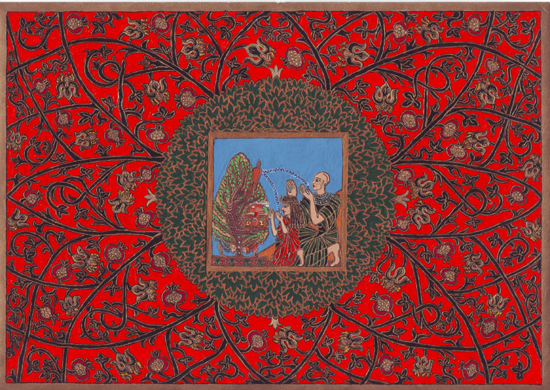 Képességeimhez mérten minél pontosabban igyekszem "lemásolni", kidolgozni az álmaimban rendszeresen visszatérő vagy egyszerűen csak jelentőségteljesnek érzett motívumokat (geometriai alakzatok, tájak, növények, állatok, emberek, helyzetek, stb.), lehetőleg ugyanazokat a színeket használva, mint az álom. Ennek hatására nemcsak rendszeresebben térnek vissza, de újabb és újabb, mégis ismerős mintázatokba rendeződtek, ha úgy tetszik egész képi mondatokká, szövegrészekké. Festegetés közben immár racionális tudatom számára is értelmezhető gondolataim, felismeréseim támadnak. Elvontabb és hétköznapibb témákról van szó, gyakran konkrét válaszok arra, hogy mit is kéne tennem, milyen irányba kéne haladnom, miket kellene olvasnom, mi módon kezelhetném ezt vagy azt a helyzetet, embert. Születési képletem elemeit, az éppen ható konstellációkat is gyakran jelenítem meg képi formában. Nagyon szeretek álomikonjaimon dolgozni. Feltöltődöm tőlük, inspirálnak, maradéktalanul lekötik figyelmemet. Gyakran szinte egész napra íróasztalomhoz láncolnak. Paradox módon a rajtuk való munkálkodás realitásérzékemet, a dolgok megvalósíthatóságára, időigényére való érzékenységemet is megnövelte. Türelmesebbé, kitartóbbá tett. Hiszen annak a képnek a részletes kimunkálása, ami pár másodperc alatt tűnik fel majd foszlik szét az álom vetítővásznán, papíromon , ébrenlétemben egy - két hetet vagy akár egy egész hónapot is igénybe vehet. És ez még csak a kezdet. Ha csak minimális vagy semennyi információval nem rendelkezem a felbukkant szimbólumról, motívumról és festés közben sem ugrik be, mi köze lehet saját életemhez, miért pont adott helyzetben bukkant fel álmaimban, értelmezése további, akár heteken, hónapokon át tartó kutakodást, utána olvasást, kérdezősködést eredményezhet. És, ha már nyert ügyem van is abból a szempontból, hogy felfogtam közlendőjét, gyakorlatba ültetése abban a formában, ami egyaránt megfelel természetének, illeszkedik saját személyiségemhez és a külvilág számára is elfogadható akár egy-két-több évet is igénybe vehet. Honlapom illusztrációi álomutazásom közben készített felvételek. (Saját készítésű Tarot kártyáimat annyiban inspirálta a Rider-Waite pakli, hogy már legelső találkozásunkkor feltűnt, mennyire hasonlít stílusa a fentebb említett, kisgyerekkori álmaimban szereplő rajzokéhoz. Ennek ellenére nem állt szándékomban "megújítani", utánozni vagy más módon belekontárkodni ebbe a kidolgozott szimbolikájú, jól működő rendszerbe. Mindössze arról van szó, hogy álmaim valamiért úgy látták jónak, hogy a Rider-Waite lapok sémáit saját életem képeivel, az adott kártyalap témájához illeszkedő történetekkel töltsék fel.)