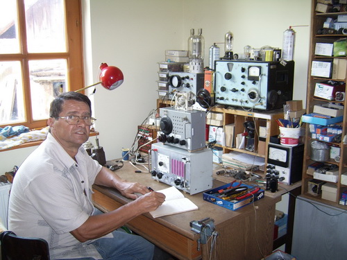5-6 éves lehettem, amikor a szomszédunk konyhájában, életemben először megláttam és szájtátva hallgattam a rádiónak nevezett varázsdobozt. Amint kis időre magamra maradtam ezzel a világcsodával - mert Boda néni a spájzban kutakodott -, gyorsan a hokedlire térdepeltem, kifordítottam a komódon lévő készüléket, és a hátlapját feszegetve a kis emberkéket akartam keresni benne... Aztán, ez év tavaszán, immár 50 éve múlt annak, hogy végleg eljegyeztük egymást: a RÁDIÓ és én. Nyolcadikos kisdiák voltam, amikor a Boda bácsitól kapott anyagokból megcsináltam első rádiómat, a detektorosat. (Ez lett családunk első rádiója.) Grozdits Antal tanár bácsi - drága emlékű számtan-fizika tanárom -, csillagos ötöst jegyzett ezért nekem az osztálynaplóba. Így jutalmazott a kezdetleges kivitelű, mégis jól működő hálózati transzformátoromért is. Azóta is tartó "bütyköléseim" nyomán, sok-sok kedves emlék, sikerélmény, és mára több száz öreg rádió halmozódott fel nálam a múló évtizedek alatt. Utóbbiakból többször ki is állítottam, ha tehettem: legutóbb 14 éven át egy debreceni szakközépiskolában. Mert hát mit ér egy világtól elzárt gyűjtemény? Gyönyörködhessenek benne mások is! Alapító és vezetőségi tagja lettem a Nosztalgia Rádió Egyesületnek is. Az 1970-es évek elején még a rádióamatőr sporttal is kacérkodtam. Magánszorgalomból, úgy-ahogy megtanultam a morzét, és Hetényi László 1965-ben leközölt 0-V-1-es vevőjét megépítve, gyakran belehallgattam az amatőrök forgalmazásába. Néhányszor belátogattam a Debrecenben – akkor még a Kossuth utcában – székelő HA 25 KDA, jubileumi hívójelű, kollektív állomásra. Egyszer még adtam is az FT 250-nel, de az éteri válasz nagy részét már nem én vettem... Az adásomat mellettem figyelő, tapasztalt rádiós jó tanácsát szinte ma is hallom: Máskor olyan tempóval menjél ki, amilyennel venni is bírod a morzét! Aztán, mégsem „mentem ki”... Munkába járás, mindennapi ingázás, majd család miatt, no meg kellő kitartás hiányában, akkor félretettem a kis megfigyelő masinámat. Csak most, mintegy fél esztendeje vettem ismét elő, immár nyugdíjas éveimet koptatva. Szelektivitásával régen sem, most pedig különösen nem voltam megelégedve. Pedig hát 0-V-1-es létére nagyon igyekezett szegénykém. Ezért külső fizimiskáját meghagyva EF80 elő-, EF183 audion, valamint ECL80-as hangerősítő csövek felhasználásával tulajdonképpen 1-V-2-re alakítottam át. Így már sokkal jobb az érzékenysége és szelektívebb is, de mégsem az igazi! Ezért fogtam magam és építgetni kezdtem egy kétszer transzponált, rövidhullámú sávvevőt. Természetesen elektroncsövekkel. Ugyan nem idegen nekem az IC és a tranzisztor sem, de mégis leginkább rádiólámpás „emlőkön” (no meg a kék-fekete-fehér Rádiótechnika írásain) nevelkedtem én. Valahogy úgy vagyok a félvezetőkkel, mint ahogyan egykor a Kárpátokról vélekedett az Alfölddel szemben, versében Petőfi: „Tán csodállak, ámde nem szeretlek…” Mostanra elkészültem a sávvevővel. Dercsényi Tamásnak a Rádiótechnika 1968-as évkönyvében közzétett kapcsolási rajzát vettem alapul. Sajnos, vele már nem beszélhetem meg az építés során szerzett tapasztalataimat. Nem kérdezhetem meg tőle: mit szólna hozzá, ha nagyfrekvenciás, hangolt előfokozattal egészíteném ki, tenném még „szuperebbé” az elviekben általa tervezett, jól működő készüléket? Hiszen egy magamfajta vén rókának ma már nem gond egy 3 x 500 pikofarádos légforgót „beszerezni”. Ami pedig már benne is van a készülékben, mert valamiféle ösztöni sugallatra eleve ilyet raktam bele. Úgy gondoltam, mégis érdemes volna kipróbálni, hogy jelent-e akkora előnyt az előfokozat, amiért érdemes hozzákezdeni az átalakításhoz. Egy különálló, kísérleti tranzisztoros nagyfrekis előerősítő készítését fontolgattam, amikor jött az „isteni szikra”! Készítenem sem kell, hiszen itt van az orrom előtt. Benne van az 1-V-2 –es vevőben! Csak össze kell azt kapcsolnom a kétszer transzponált sávszuper antennabemenetével. Így is tettem. Egyeneském elő- és audion fokozatának találkozási pontjáról leágazva, rövid vezetékkel összehoztam a két készüléket. A visszacsatoló potmétert teljesen visszatekertem. Dacára a mindössze másfél méteres mérőzsinór-antennámnak, a kapott eredmény felülmúlta várakozásomat, lenyűgözött. Különösen 7 MHz-en. Az alkalmi illesztés valószínűleg itt a legoptimálisabb. Mivel az 1-V-2 előerősítője laposan hangol, elegendő azzal sávközépre állni, és csak a szupervevőt hangolni. Ezzel szemben nagyon is pontosan kell hangolnom egyenes vevőmön akkor, ha kezdem feltekerni a visszacsatoló gombját, és az audion visszadolgozik az előcső felé. Ez esetben akár a berezgés határáig „kihegyezett”, nagyon erős, előszelektált jelet kap a szuper. Oly annyira, hogy érzékenységét vissza kell fognom, hiszen a jóból is megárt a sok. Szuperem sokkal érzékenyebb lett, és bőven van hangerőtartaléka is. Azt is meglepődve tapasztaltam, hogy még a pár méteres szobaantennám „nyeresége” is javítható, ha a lomjaim között fellelt régi, porcellán kalitkába foglalt variométer közbeiktatásával lehangolom. Ezek a kísérletek végleg meggyőztek arról, hogy Dercsényi Tamás sávszuperét mindenképpen érdemes egy előcsővel megtoldanom annál is inkább, hiszen ott árválkodik a beépített hangolókondi kihasználatlan, harmadik szektora. Most együtt, összekapcsolva használom a két készüléket. Ám a kis egyenes vevő akkor sem kerül vissza a polcra, ha megcsinálom a szupervevő átalakítását. Fóniázó amatőröket most is, később is szívesen hallgatok rajta. 