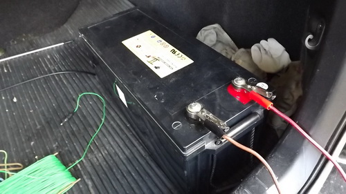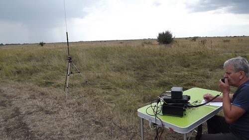 A távolban már esik Szerencsére többféle megoldással készültem, így egy gyorsan és könnyen telepíthető Yaesu ATAS-25 antennát tettem ki egy háromlábú fotóállványra. Aztán egy asztal, majd a rig következet. Áramellátásról egy 12V 160Ah akku gondoskodott melyet kivenni sem tudtam a kocsiból a súlya miatt. Az akkut HA7MO Laci barátom kölcsönözte. Köszönet érte.